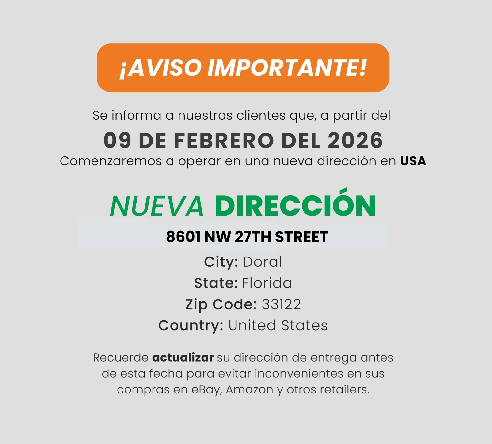 Obtén tu dirección en Miami